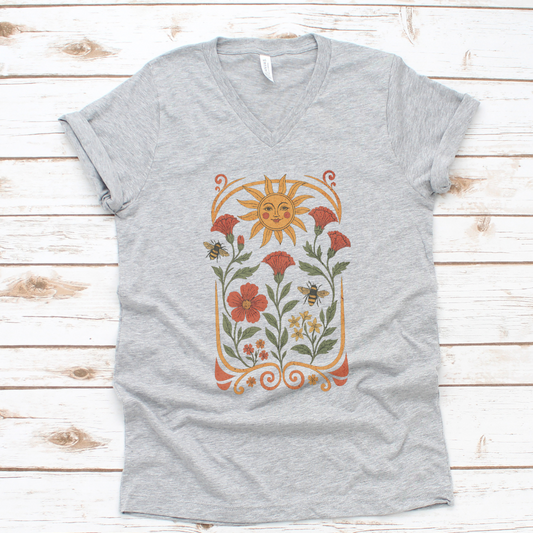 Golden Floral - Bella Canvas Short Sleeve V Neck