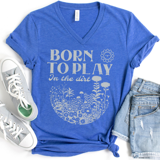 Born To Play In The Dirt - Bella Canvas Short Sleeve V-Neck Tee