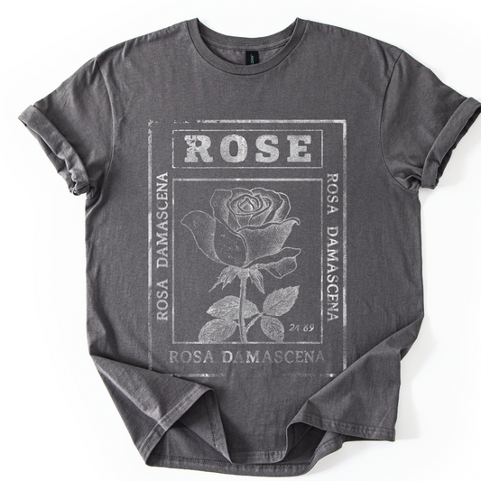 Rosa Damascena, Vintage Faded Print - Gildan Lightweight T Shirt