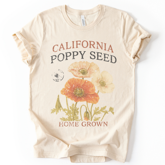 Poppy Seed, Faded Vintage Print - Bella Canvas Super Soft Fitted T Shirt