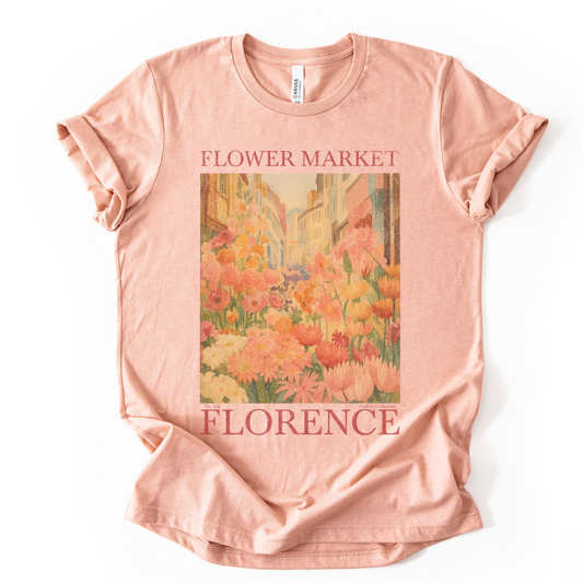 Flower Market, Vintage Distressed Poster- Bella Canvas Super Soft Fitted T Shirt