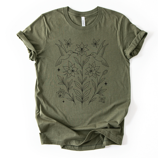 Humming Bird Blossom - Bella Canvas Super Soft Fitted T Shirt