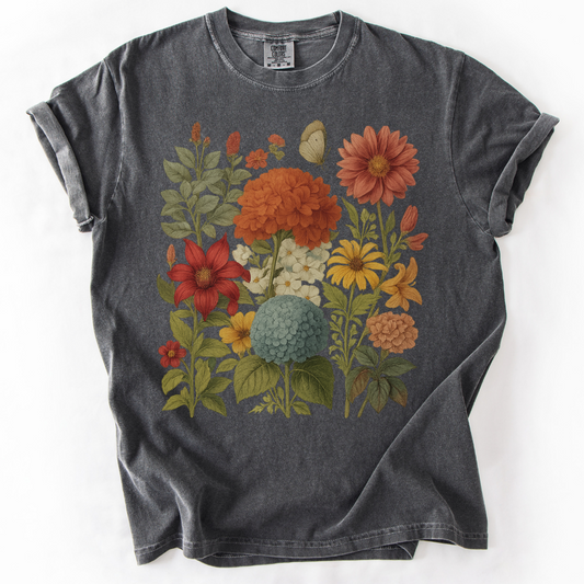 Vintage Distressed Field of Bloom Floral- Comfort Colors Relaxed Fit Premium T Shirt
