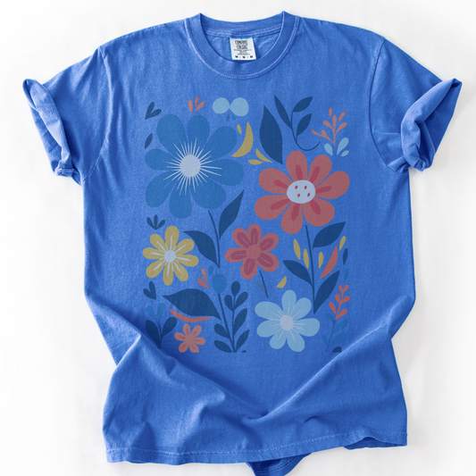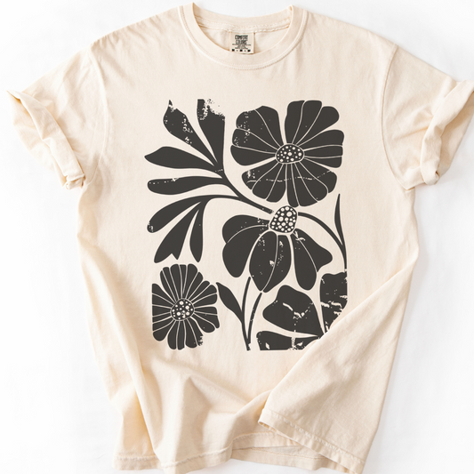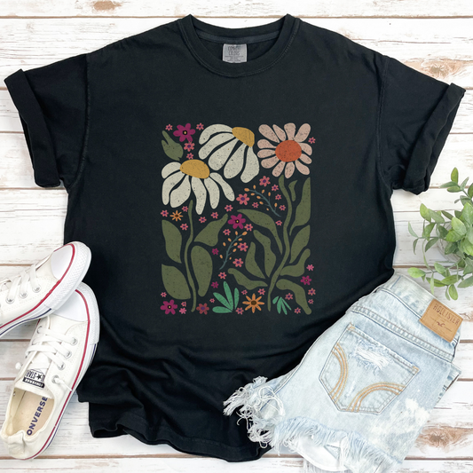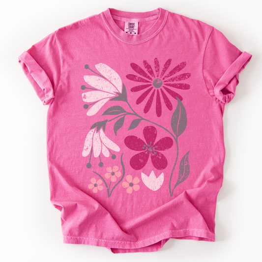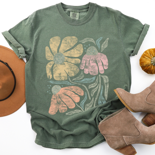 Faded Funky Flower Print - Comfort Colors Relaxed Fit Premium T Shirt