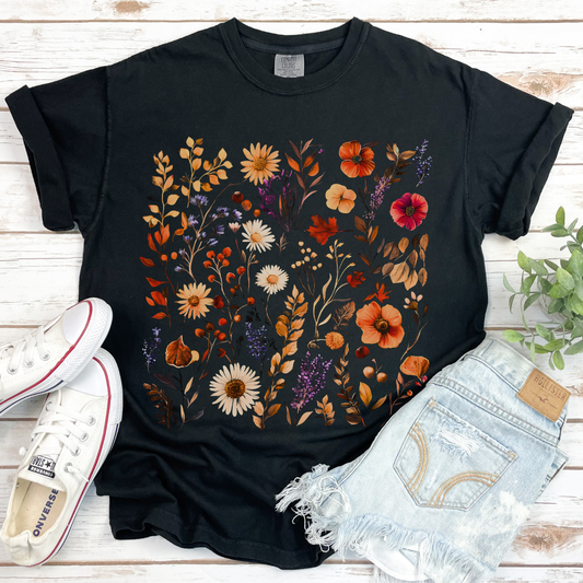 Autumn Boho Floral Print - Comfort Colors Relaxed Fit Premium T Shirt