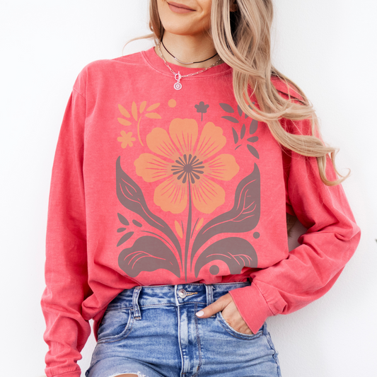 Retro Floral - Comfort Colors Long Sleeve Premium T Shirt