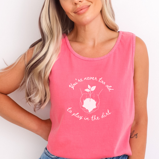 You're Never Too Old To Play In The Dirt - Comfort Colors Premium Tank Top