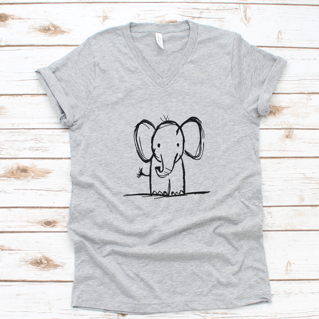 Elephant Sketch - Short Sleeve V-Neck Tee